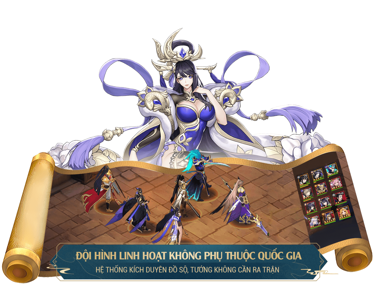 Giúp toàn thể phe ta xóa tất cả trạng thái bất lợi, đồng thời trong 3 giây miễn dịch trạng thái khống chế, và hồi phục HP bằng với 250% pháp công Lưu Bị, tăng 20% trạng thái miễn thương, duy trì 6 giây.