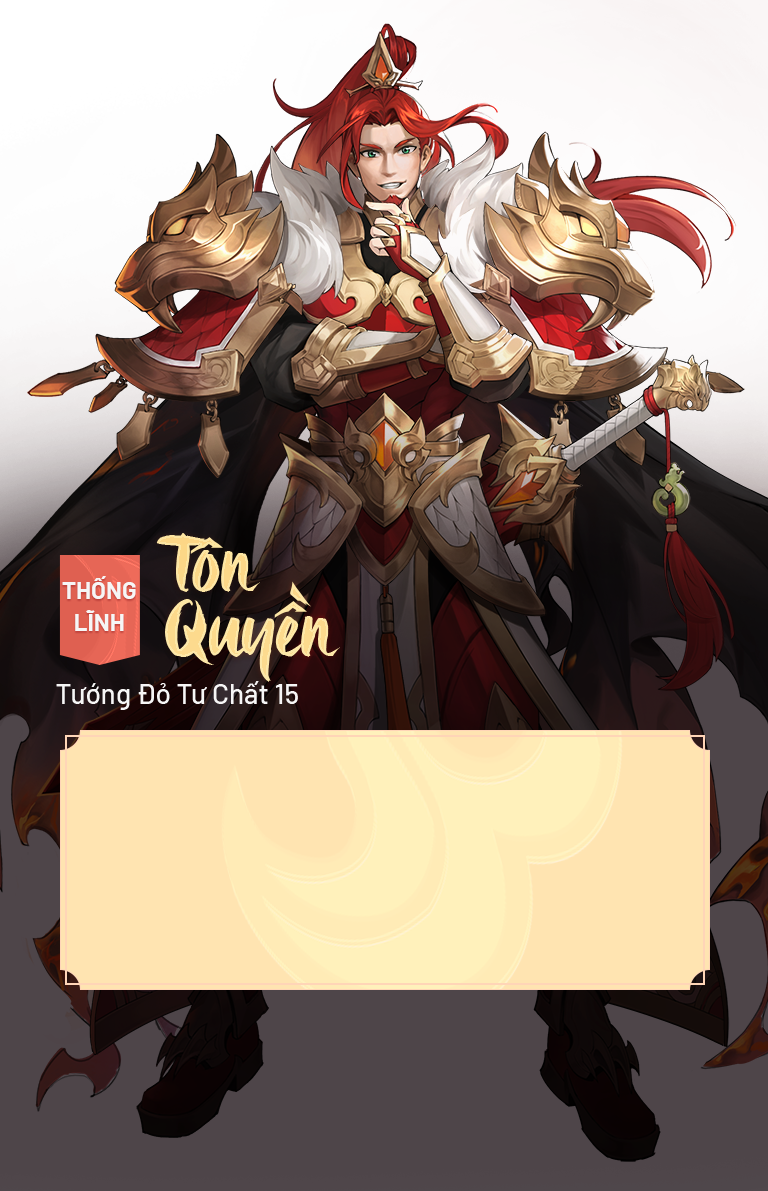 Ngô Thái Tổ Hoàng Đế Tôn Quyền, tự Trọng Mưu. Người dựng nên Đông Ngô. Cuối cùng vật lộn giữa Ngụy Thục, hình thành thế cuộc chia rẽ.
